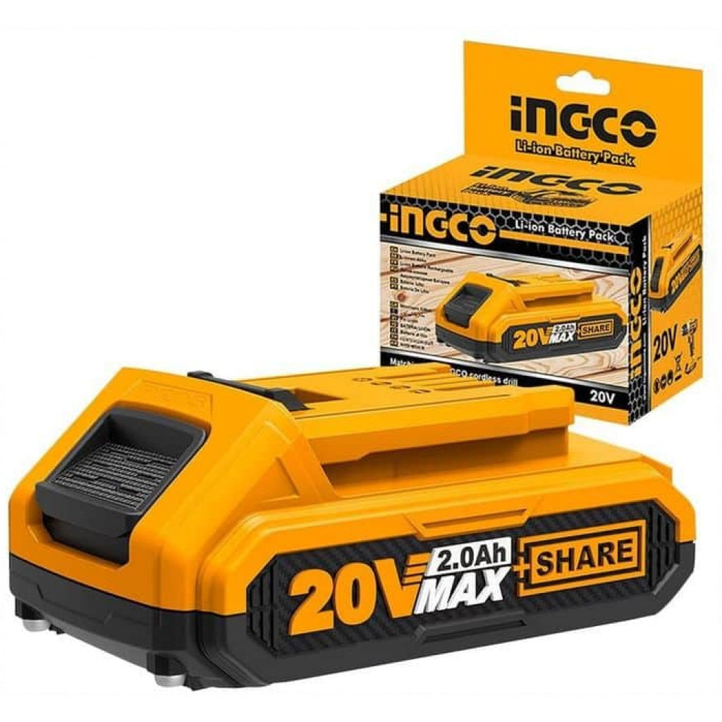 Batería industrial P20S 2Ah 20V Ingco (FBLI20011). batería recargable de alto rendimiento compatible con herramientas inalámbricas. ofreciendo autonomía y carga rápida para trabajos continuos.