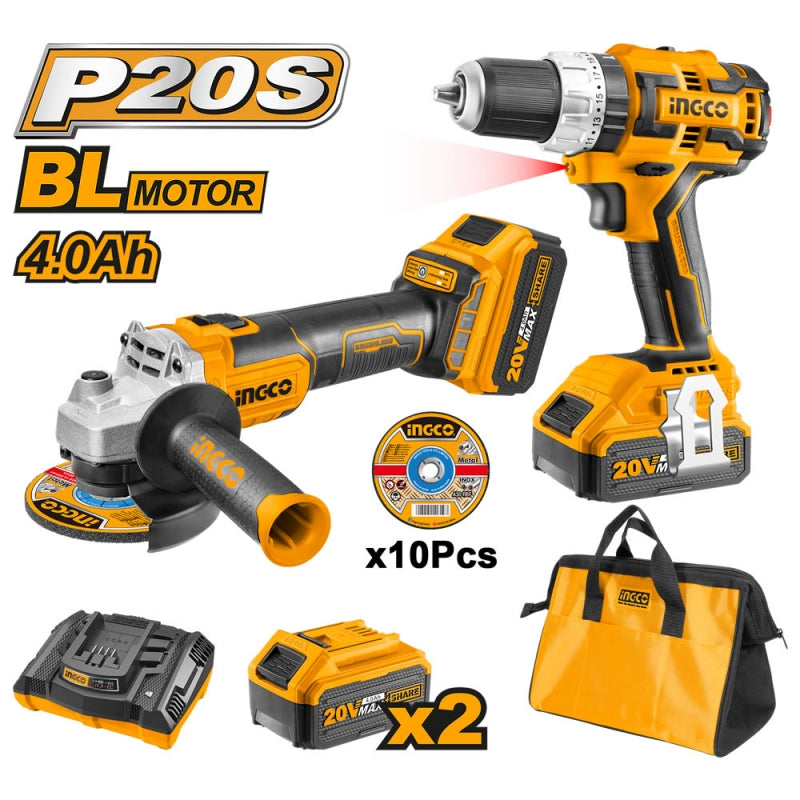 COMBO INAL. INGCO TALADRO 20V+ESMERIL ANGULAR 20V(CKLI2009)