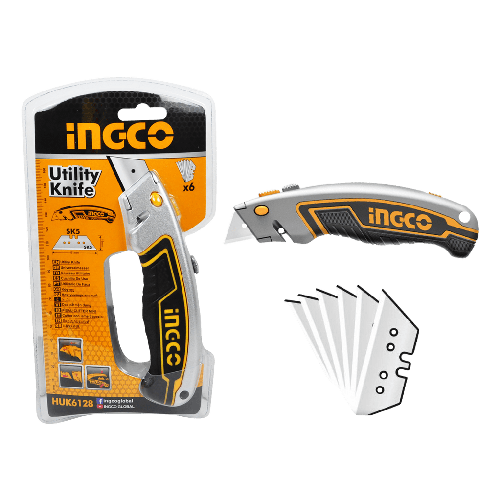 CUCHILLO CARTONERO 61X19MM INGCO CON HOJA SK5 RETRACTIL (HUK6128)