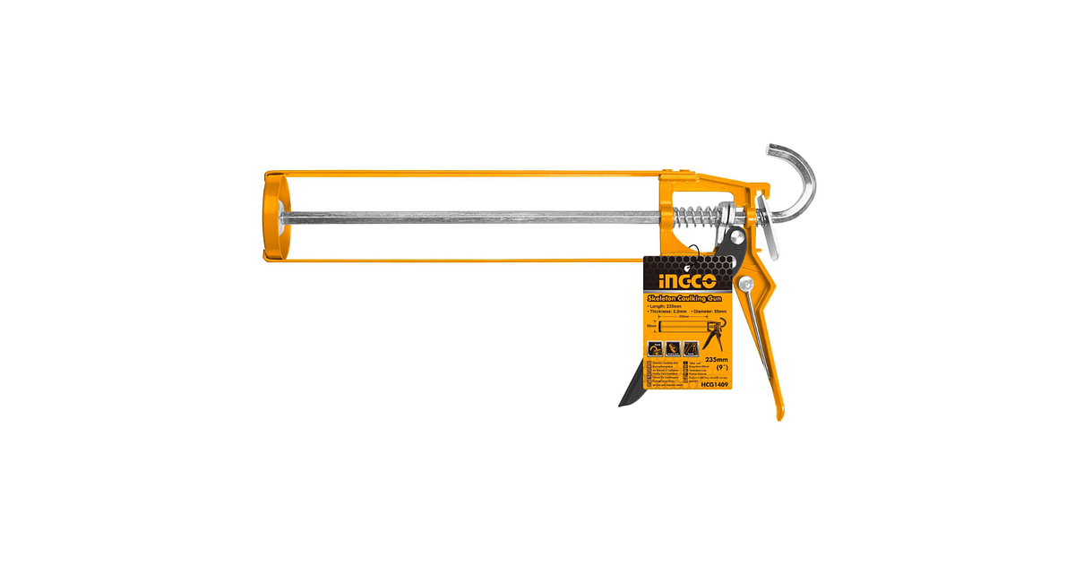 PISTOLA CALAFATERA 9´´ INGCO (HCG1409). pistola calafatera de 9 pulgadas. ideal para aplicar selladores. silicón y adhesivos. ofreciendo precisión. facilidad de uso y durabilidad en trabajos de construcción. bricolaje y mantenimiento profesional.
